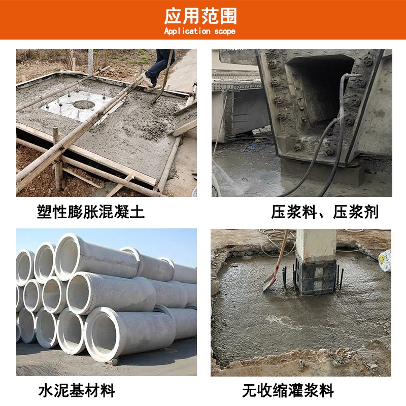 塑性膨胀剂是一种用于压浆剂、无收缩灌浆料、混凝土等材料体系,要求塑性阶段就能产生微膨胀以补偿塑性阶段的收缩,避免混凝土砂浆的沉降与开裂,确保混凝土砂浆的密实、充盈,具有性能稳定,适用范围广等优点,在不同体系中都有较好的膨胀效果。